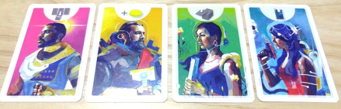 - 카드: 4명의 인물 카드와 숫자 카드로 구성되어 있습니다. 각 인물마다 고유한 기능이 있으며, 숫자 카드는 2부터 6까지 있습니다.