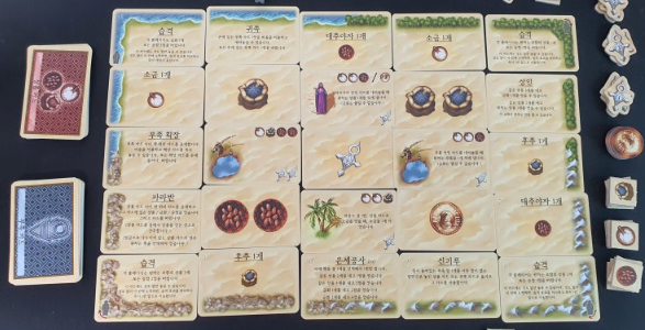 - 카드 공개 및 라운드 종료: 새롭게 배치된 카드를 공개하고, 시작 플레이어 토큰을 넘깁니다. 두 플레이어가 모두 행동을 마쳤다면 라운드가 종료되고 새로운 라운드를 시작합니다.