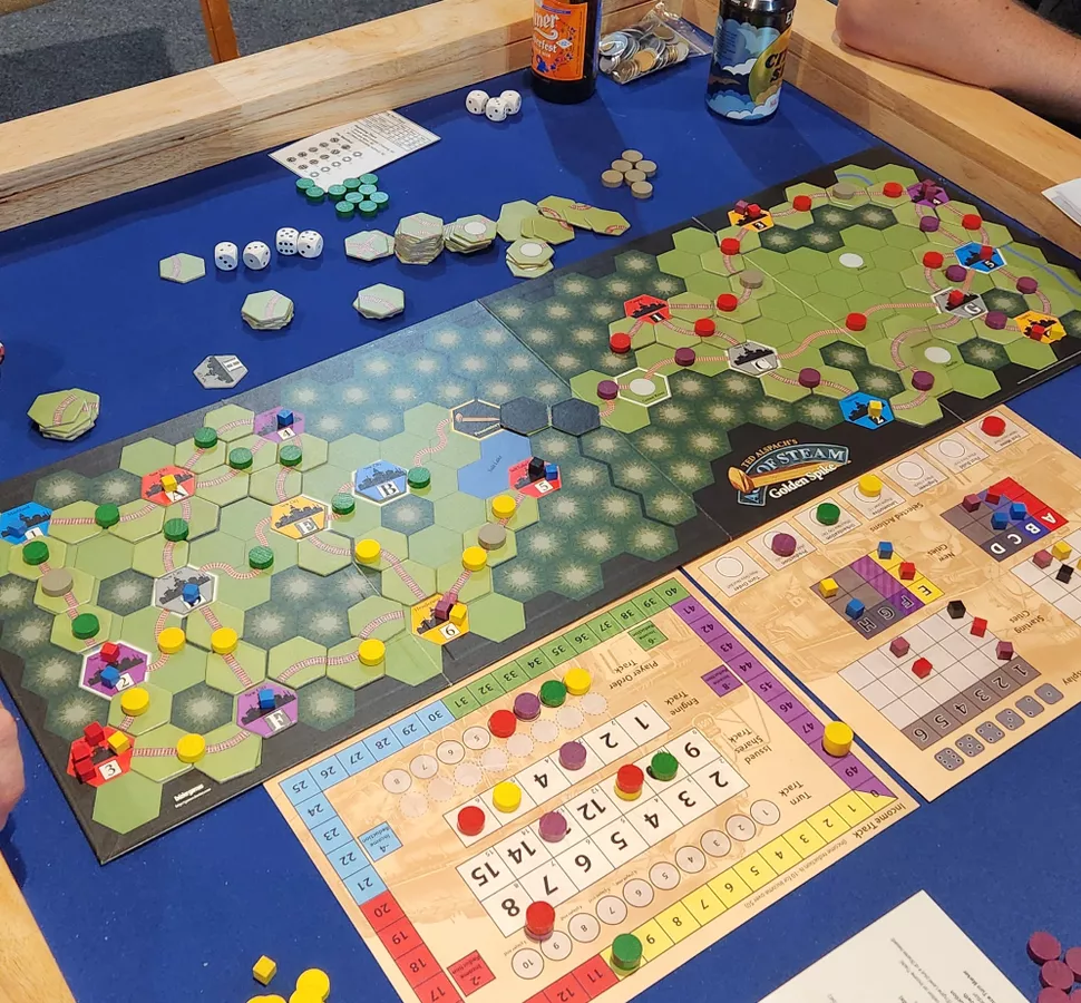 19세기 중반, 미국 대륙을 횡단하는 최초의 대륙횡단 철도 건설 경쟁이 한창이었습니다. 이 역사적 순간을 보드게임으로 재현한 것이 바로 'Age of Steam Expansion: Golden Spike'입니다. 이 확장팩은 원작 'Age of Steam'의 긴장감 넘치는 게임플레이에 역사적 테마를 더해 더욱 흥미진진한 경험을 선사합니다. 오늘은 이 게임의 매력적인 요소들을 자세히 살펴보겠습니다.
