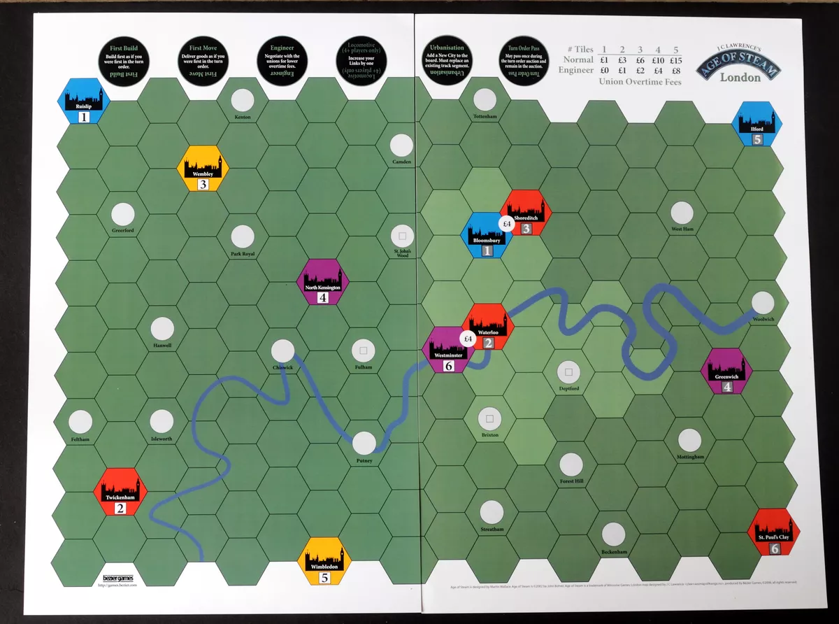 Two expansion maps for Age of Steam, comprising London and Sun. Age of Steam Expansion: London From the outrageous real estate prices to the fees associated with the unions, building a railroad network in London is incredibly expensive, challenging veteran