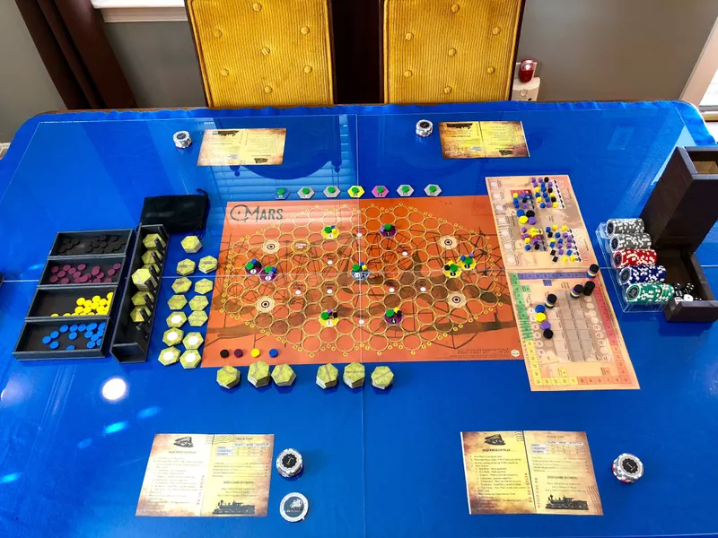 화성의 독특한 지형을 고려한 효율적인 철도 네트워크 설계는 게임의 성공에 있어 매우 중요합니다. 플레이어들은 맵의 가장자리를 넘나드는 철로 건설 옵션을 적극 활용하여 최소한의 비용으로 최대한의 연결성을 확보해야 합니다. 이러한 전략은 특히 자원 채취와 도시 간의 원활한 물류 흐름을 보장하는 데 큰 도움이 됩니다. 예를 들어, 올림푸스 몬스와 같은 산악 지형을 피해 경로를 설계하는 것은 필수적입니다. 이 지역은 철도 건설에 많은 비용이 들고, 이동의 비효율성을 초래할 수 있기 때문에, 이를 우회하는 경로를 찾는 것이 중요한 전략이 될 수 있습니다. 마티안은 단순한 자원이 아닌 게임의 중요한 전략적 요소로 자리잡고 있습니다. 마티안을 효과적으로 운송하여 추가 승점을 확보하는 것뿐만 아니라, 마티안이 있는 도시가 녹색 도시로 취급된다는 점을 잘 활용하는 것이 중요합니다. 이를 통해 플레이어는 다양한 색상의 화물을 더 유연하게 운송할 수 있는 전략을 구사할 수 있으며, 이는 게임의 흐름을 유리하게 이끌 수 있는 기회가 됩니다. 마티안의 위치와 특성을 분석하여, 다른 플레이어들과의 경쟁에서 우위를 점하는 것이 필수적입니다. 이 확장판에서는 기존 게임의 특수 행동들이 약간 변형되어 있습니다. 특히 '엔지니어' 행동은 4개의 철로를 건설하는 대신, 50% 할인된 가격으로 철로를 건설할 수 있게 해줍니다. 이러한 변화는 자원을 효율적으로 관리하는 데 큰 도움이 되며, 플레이어들은 이를 통해 빠르게 철도 네트워크를 확장할 수 있습니다. 자원의 배분과 행동 선택이 게임의 결과에 미치는 영향을 고려할 때, 이러한 특수 행동을 잘 활용하는 것이 승리의 열쇠가 될 것입니다. 결국, 에이지 오브 스팀: 화성 확장판은 복잡한 전략과 창의적인 사고를 요구하는 매력적인 게임 경험을 제공합니다. 플레이어들은 각자의 전략을 세우고, 상대의 움직임을 주의 깊게 살펴보며, 치열한 경쟁 속에서 승리를 쟁취해야 합니다.